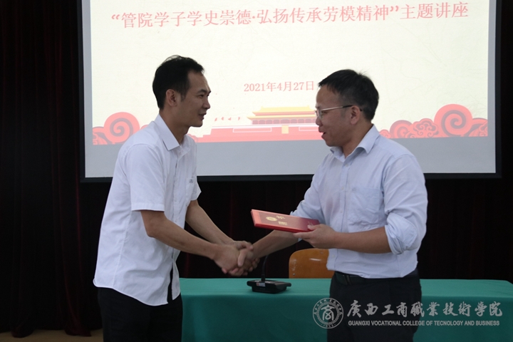 • ?為扎實推進黨史學習教育工作,弘揚勞模精神和工匠精神,在“五一”國際勞動節(jié)來臨之際,我院邀請廣西糧運物流集團有限公司副總經(jīng)理、自治區(qū)“勞動模范”榮譽獲得者王喜東同志到鵬飛校區(qū)作報告。學院副院長闕勇平...