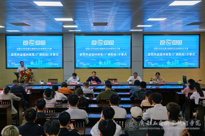 • 4月26日下午,全國大中學生第九屆海洋文化創(chuàng)意設計大賽獲獎作品巡回展覽在我院舉行,廣西文化藝術職業(yè)教育教學指導委員會秘書長陸生發(fā)教授、廣西文化藝術職業(yè)教育教學指導委員會副主任委員陳良教授出席活動。學院...