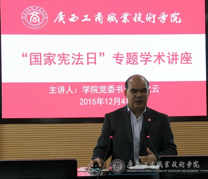 • 2015年12月4日上午,為引導我校學生弘揚法治精神,普及憲法法律知識,學院黨委書記覃武云在學院2119會議室為經(jīng)管系營策1432班和財信系電商1431班全體同學作“增強憲法意識,維護憲法權威”的專題學術講座。社科部...