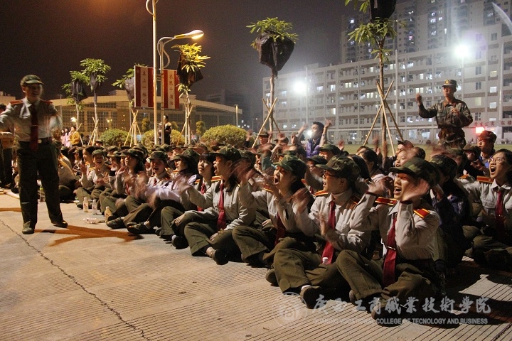 • 2015年12月9日晚上7時,我院2015級軍訓拉歌比賽在校本部順利舉行。 每班由一位指揮員帶領拉歌。隨著指揮員的口號,同學們配合著手勢,用最大的嗓門盡情地叫喊著“來一個!對面的!來一個!叫你來你就來!……”“...