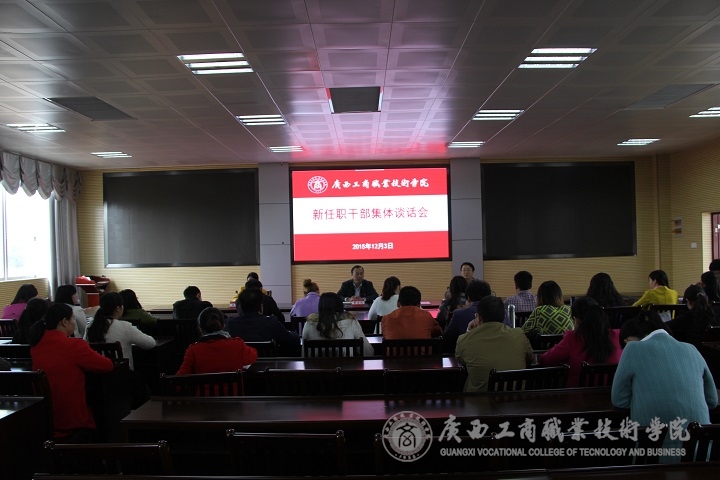 • 12月3日下午,我院召開新任職干部集體談話會。學院黨委副書記蒙啟成出席會議,黨委組織部(人事處)主持工作副部(處)長蔣百平主持會議。2015年10月以來新任職科級干部及交流換崗干部參加了會議。 會上,蔣百平...