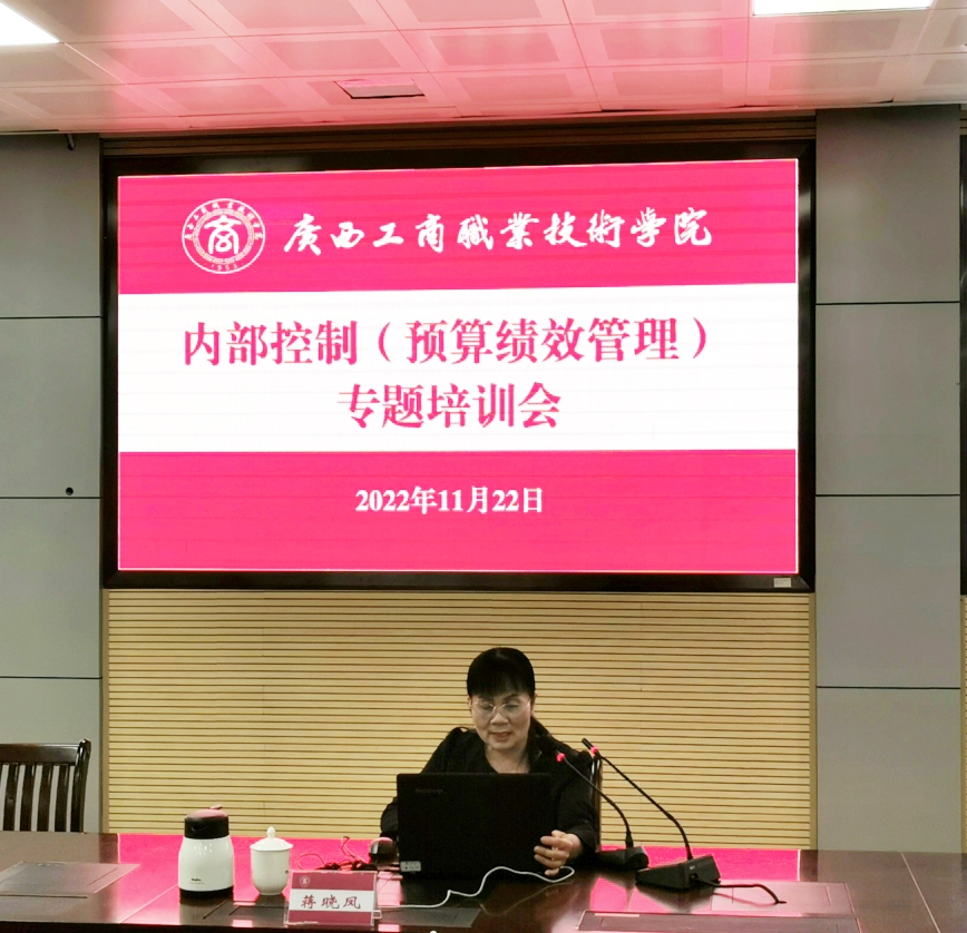 • 為提高學(xué)院內(nèi)部管理水平,規(guī)范內(nèi)部控制,提高預(yù)算績(jī)效目標(biāo)編制、預(yù)算績(jī)效評(píng)價(jià)的質(zhì)量,2022年11月22日上午,我院邀請(qǐng)廣西財(cái)經(jīng)學(xué)院蔣曉鳳教授在鵬飛校區(qū)2119會(huì)議室作內(nèi)部控制(預(yù)算績(jī)效管理)專題培訓(xùn)會(huì)。(蔣曉鳳...