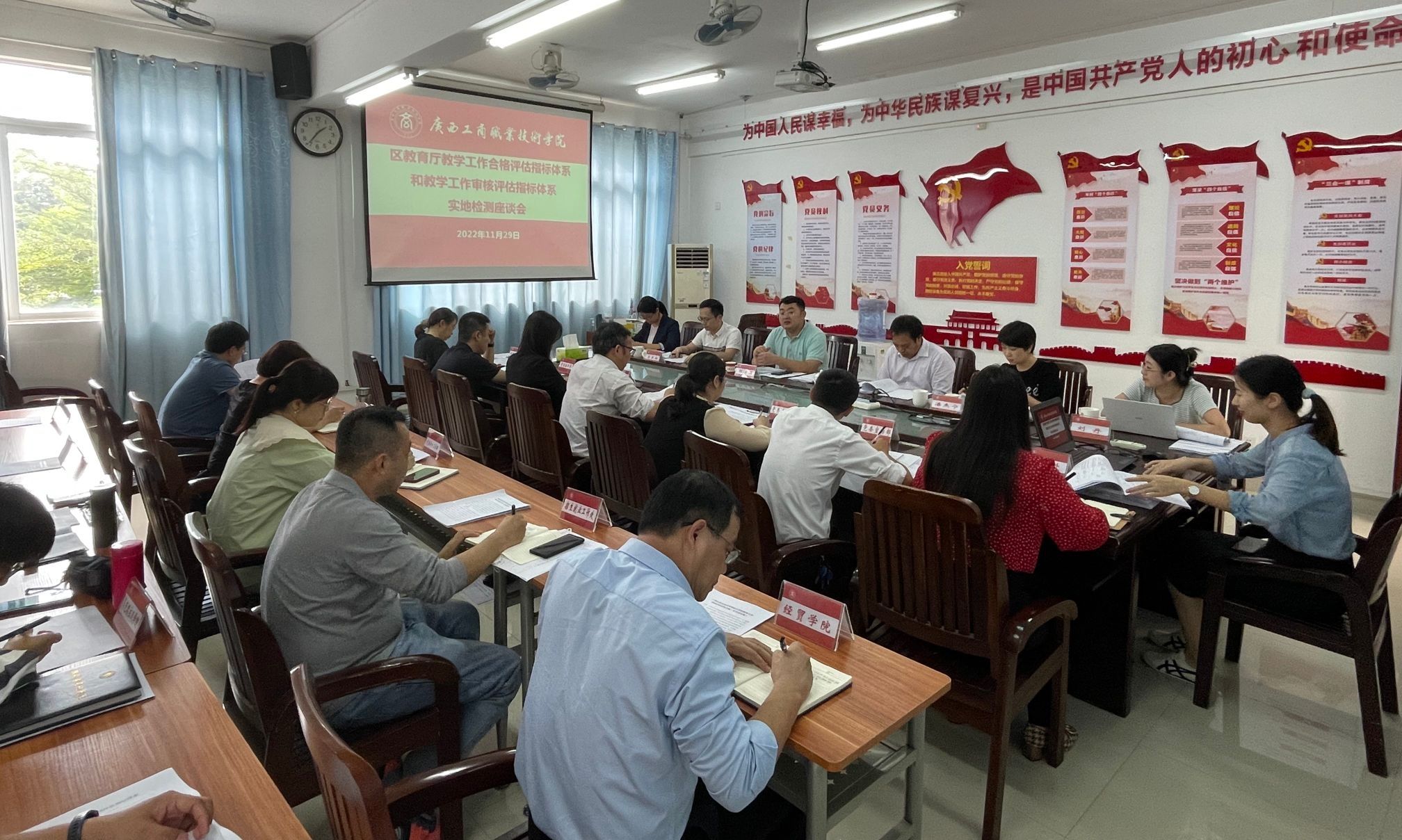 • 2022年11月29日,我院召開了承辦首屆廣西高校黨務(wù)工作者基本功大賽(公辦高職高專組)總結(jié)會(huì)。學(xué)院黨委書記覃武云、黨委副書記蒙啟成、各黨總支書記、各直屬黨支部書記、各教研室黨支部書記、各學(xué)生黨支部書記和...