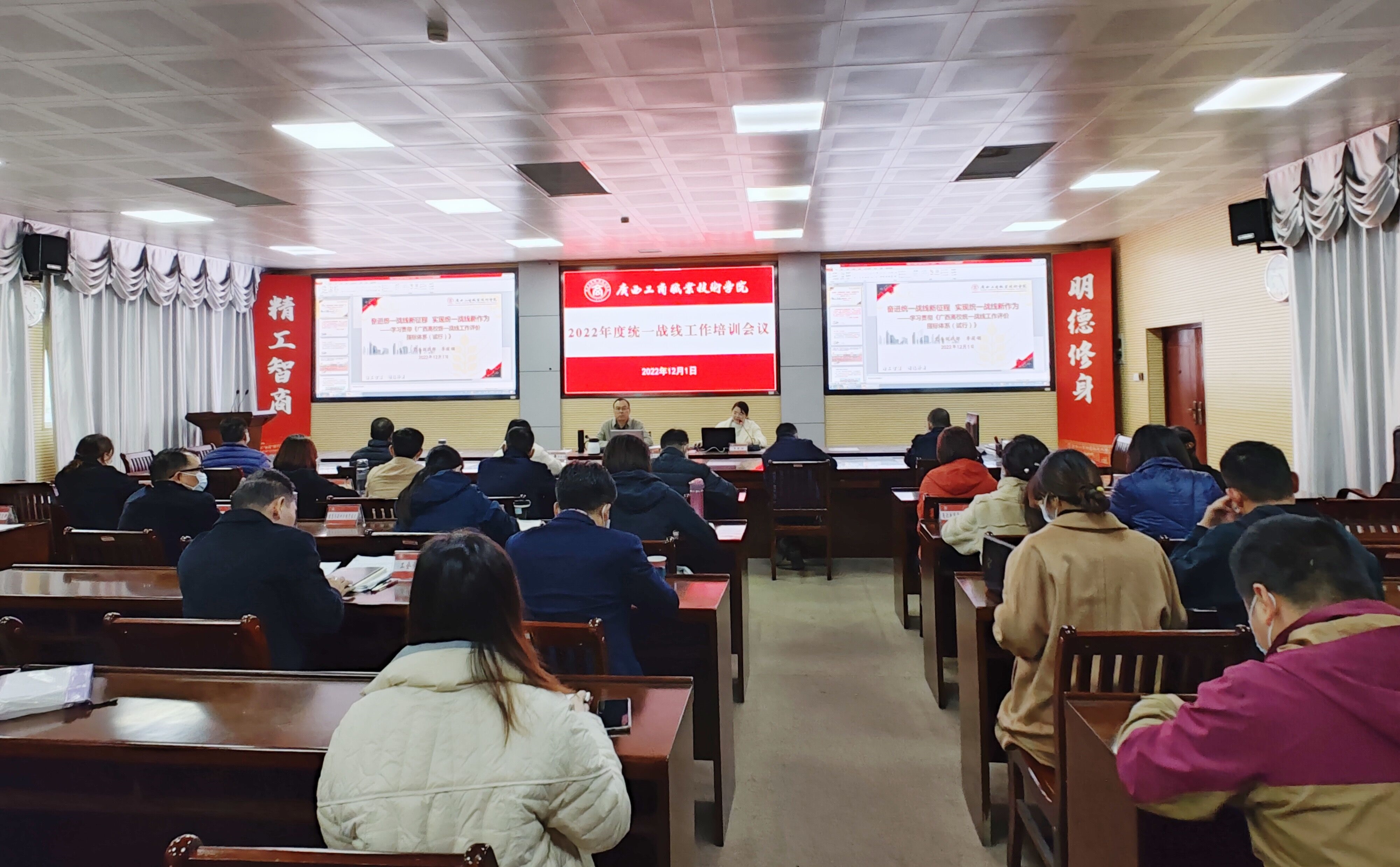 • 為進(jìn)一步鞏固“大統(tǒng)戰(zhàn)”工作格局,促進(jìn)學(xué)院基層黨組織落實(shí)統(tǒng)一戰(zhàn)線工作職責(zé),提升統(tǒng)戰(zhàn)干部能力素質(zhì),我院于12月1日上午在鵬飛校區(qū)教學(xué)樓2119視頻會(huì)議室召開2022年度學(xué)院統(tǒng)一戰(zhàn)線工作培訓(xùn)會(huì)議。學(xué)院黨委副書記蒙啟...