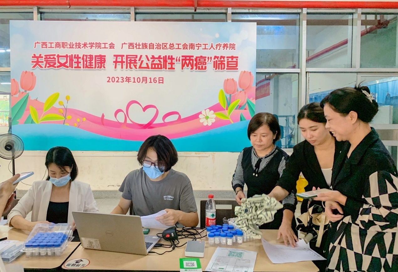 • 10月16日下午,學院與廣西壯族自治區(qū)總工會南寧工人療養(yǎng)院在鵬飛校區(qū)開展“關愛女性健康 開展公益性‘兩癌’?篩查”體檢服務,為學院一線女教職工體檢。(活動現(xiàn)場)開展公益性“兩癌 ”篩查服務活動是自治區(qū)總工...
