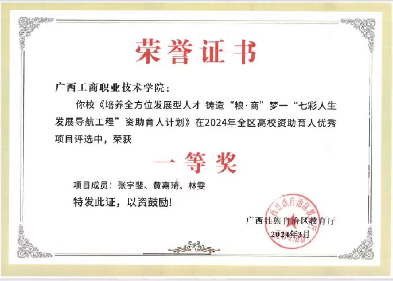 • 近日,教育廳公布了2024年全區(qū)資助育人項目和工作典型案例評選結(jié)果,我校《培養(yǎng)全方位發(fā)展型人才鑄造“糧·商”夢——“七彩人生發(fā)展導(dǎo)航工程”資助育人計劃》資助育人工作典型案例榮獲一等獎?!捌卟嗜松l(fā)展導(dǎo)航...