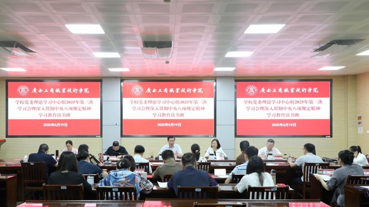 • 6月19日,學(xué)校召開黨委理論學(xué)習(xí)中心組2025年第三次學(xué)習(xí)會暨深入貫徹中央八項(xiàng)規(guī)定精神學(xué)習(xí)教育讀書班第三次研討會,重點(diǎn)圍繞習(xí)近平總書記關(guān)于深入貫徹中央八項(xiàng)規(guī)定精神學(xué)習(xí)教育的重要指示批示精神、《習(xí)近平關(guān)于加...