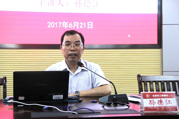 • ? ? ? ? 2017年6月21日下午,我院在學(xué)院會議室開展了實習(xí)生黨員專題黨課活動。本次黨課由學(xué)院黨委學(xué)工部部長孫德江主講,由經(jīng)管系黨總支書記莫春華主持。各系黨支部代表、在南寧實習(xí)的學(xué)生黨員、學(xué)院15、16級的入...