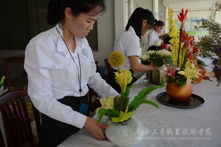 • 2017年6月24日上午,酒店管理專業(yè)的學(xué)生在學(xué)生公寓中樓南側(cè)進(jìn)行專業(yè)情景模擬展演。經(jīng)管系馬旻老師擔(dān)任此次展演的主持人。此次教學(xué)成果展演展示的主要內(nèi)容有茶藝展示、禮儀展示、禮儀餐桌布置、花藝展示、調(diào)酒技能...