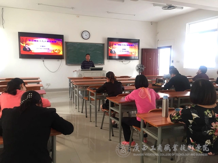 • ? ? ? ? 11月1日上午,學(xué)院黨委召開十九大精神學(xué)習(xí)會,認(rèn)真學(xué)習(xí)傳達(dá)黨的十九大精神,安排部署學(xué)校學(xué)習(xí)宣傳貫徹工作,黨委書記覃武云主持學(xué)習(xí)會并作中心發(fā)言,黨委副書記、院長陳杰、黨委副書記、紀(jì)委書記蒙啟成、...