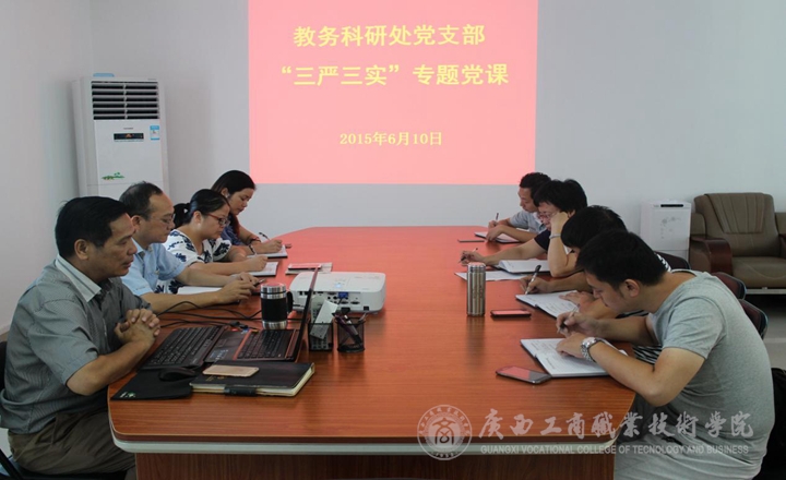 • 2015年6月10日上午10點,根據學院的安排,教務科研處黨支部開展了“三嚴三實”專題黨課活動。黨課由教務科研處韋勝強處長主持,教務科研處黨支部全體黨員參加,作為聯(lián)系領導,李維副院長也出席了教務科研處黨支部...
