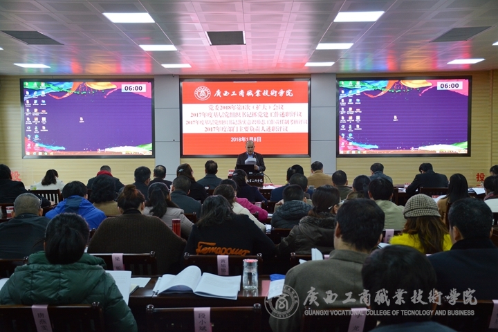 • ?????? 1月12日下午,我院在校本部教學(xué)樓報(bào)告廳召開(kāi)2017-2018學(xué)年第一學(xué)期教職工期末大會(huì)。學(xué)院黨委副書(shū)記、紀(jì)委書(shū)記蒙啟成,副院長(zhǎng)李仕欽,副院長(zhǎng)李維,副院長(zhǎng)陳寧春以及全體教職工參加了本次會(huì)議。大會(huì)由蒙啟成...